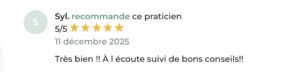 Publié sur Madison DuboisTrustindex vérifie que la source originale de l'avis est Google. Ça fait un mois que j’ai commencé un accompagnement avec Laetitia et franchement, je la recommande les yeux fermés. On se sent en confiance dès la première séance, elle sait vraiment mettre à l’aise. Son cabinet a une atmosphère chaleureuse, presque comme à la maison, où l’on se sent bien tout de suite ! Merci à toi Laetitia pour ta bienveillance et ta bonne humeur que tu apportes à chaque rendez-vous !Publié sur Camille COSTETrustindex vérifie que la source originale de l'avis est Google. J'ai consulté cette professionnelle pour diverses problématiques et divers questionnements, son écoute, son empathie et sa bienveillance m'ont mise en confiance et m'ont permis de me sentir en confiance et de me confier ! Son approche et ses outils utilisés ont été adapté à la situation. Ses intuition et ses conseils sont toujours pertinents ! Son professionalisme est grandement apprécié. Je reccomande Laetita :)Certifié par: TrustindexLe badge vérifié de Trustindex est le symbole universel de confiance. Seules les meilleures entreprises peuvent obtenir le badge vérifié, avec une note supérieure à 4.5, basée sur les avis des clients au cours des derniers 12 mois. En savoir plus