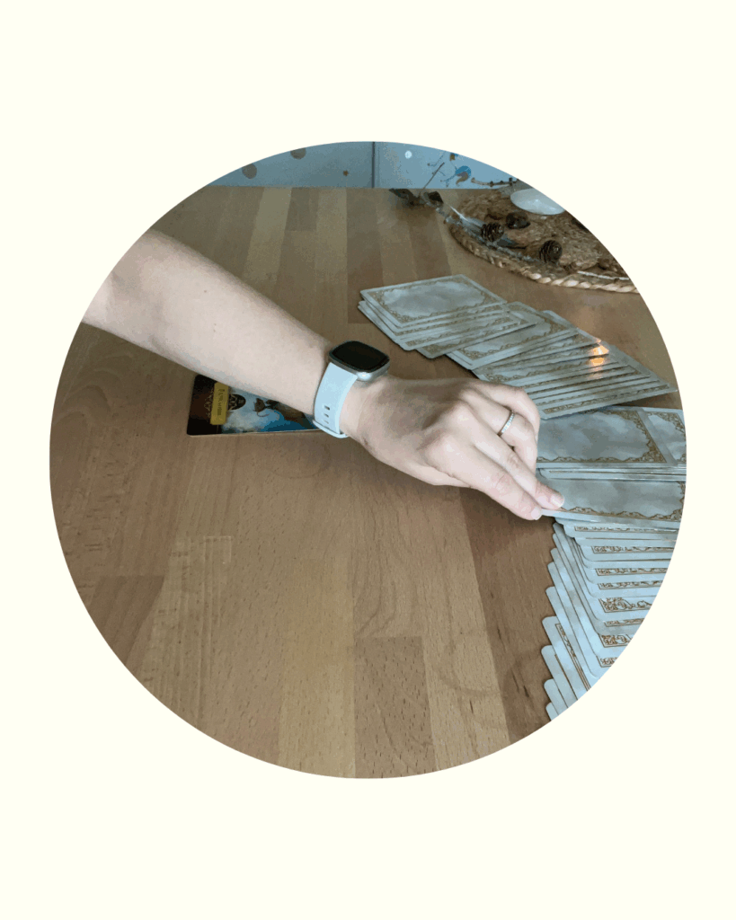 Puis, je procède au tirage et, avec mon intuition, j’interprète le message proposé par les cartes. Ne détenant pas la vérité absolue (les cartes non plus), nous échangeons sur cette guidance. C’est un moment privilégié où vous me partager vos ressentis et où on aboutit à l’éclairage le plus juste pour vous, celui qui vous aide à avancer.
